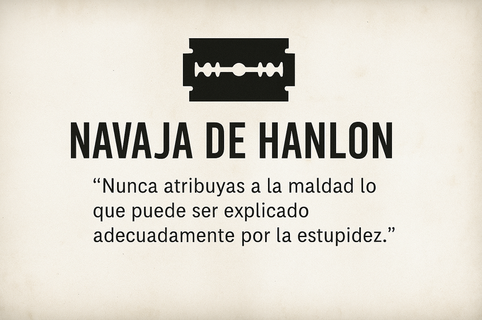 La navaja de Hanlon (o principio de Hanlon) es un aforismo que se utiliza como regla o herramienta mental, aunque, dado el origen que veremos, algunos lo consideran «una estupidez de la estupidez»